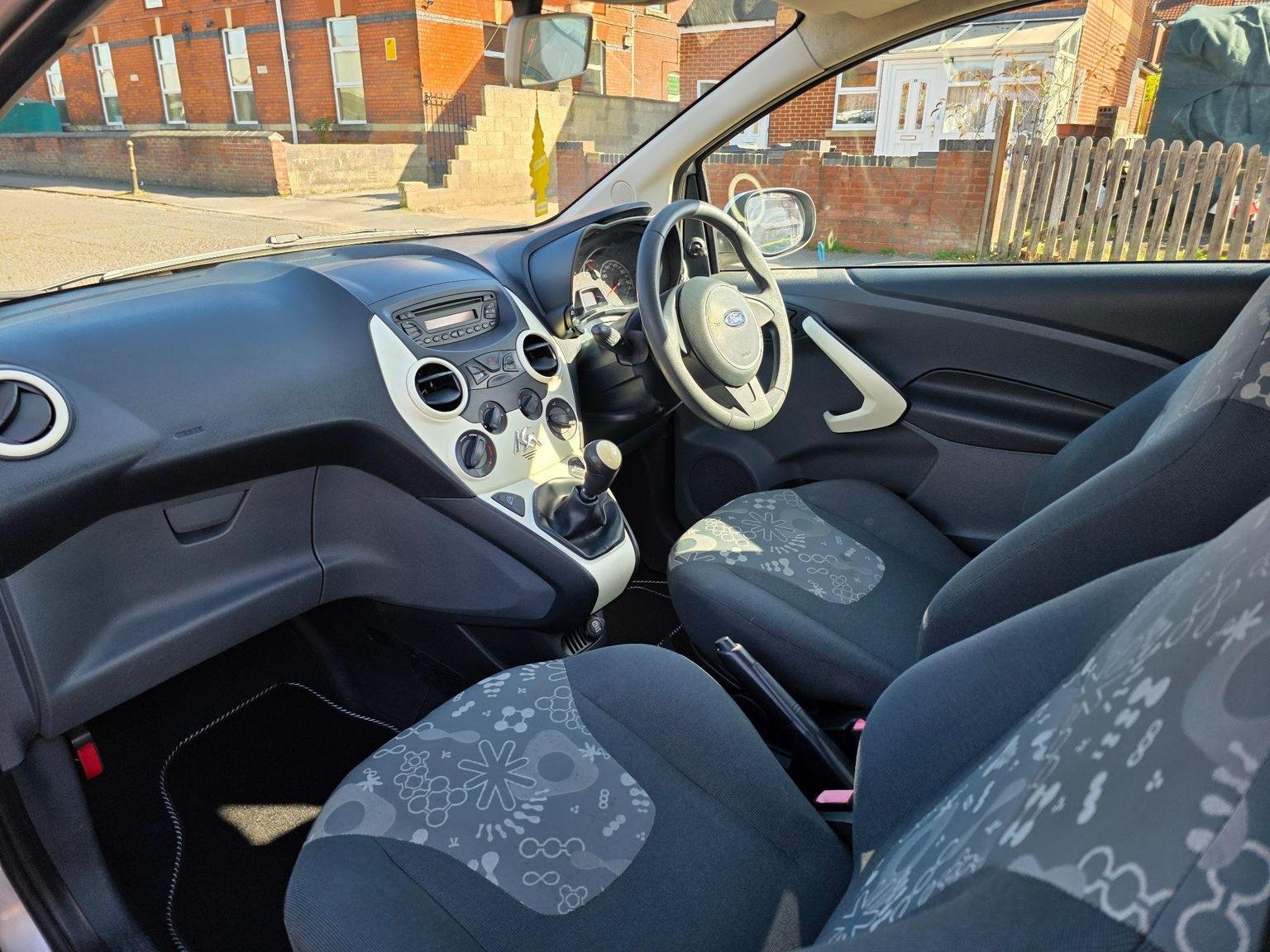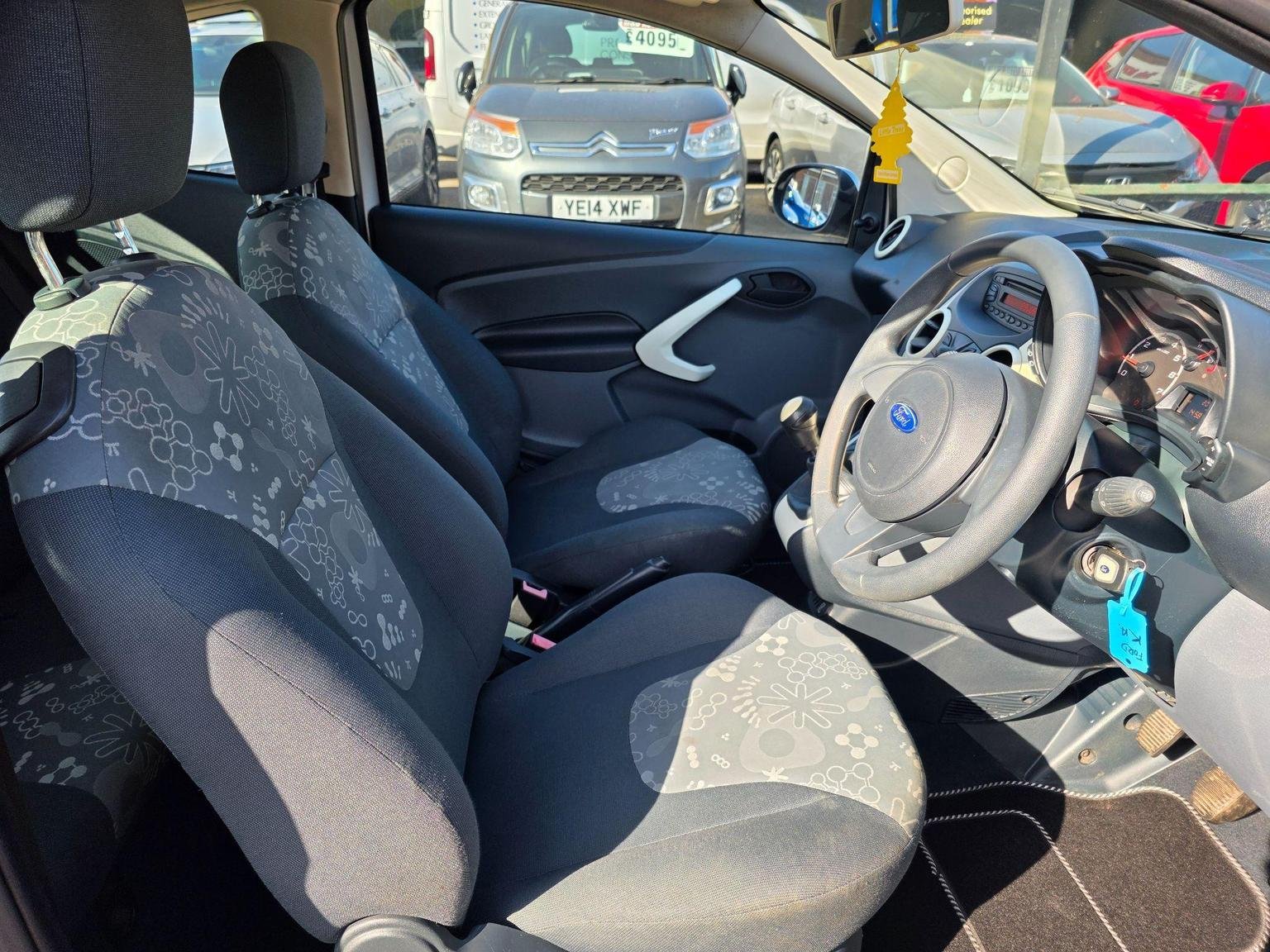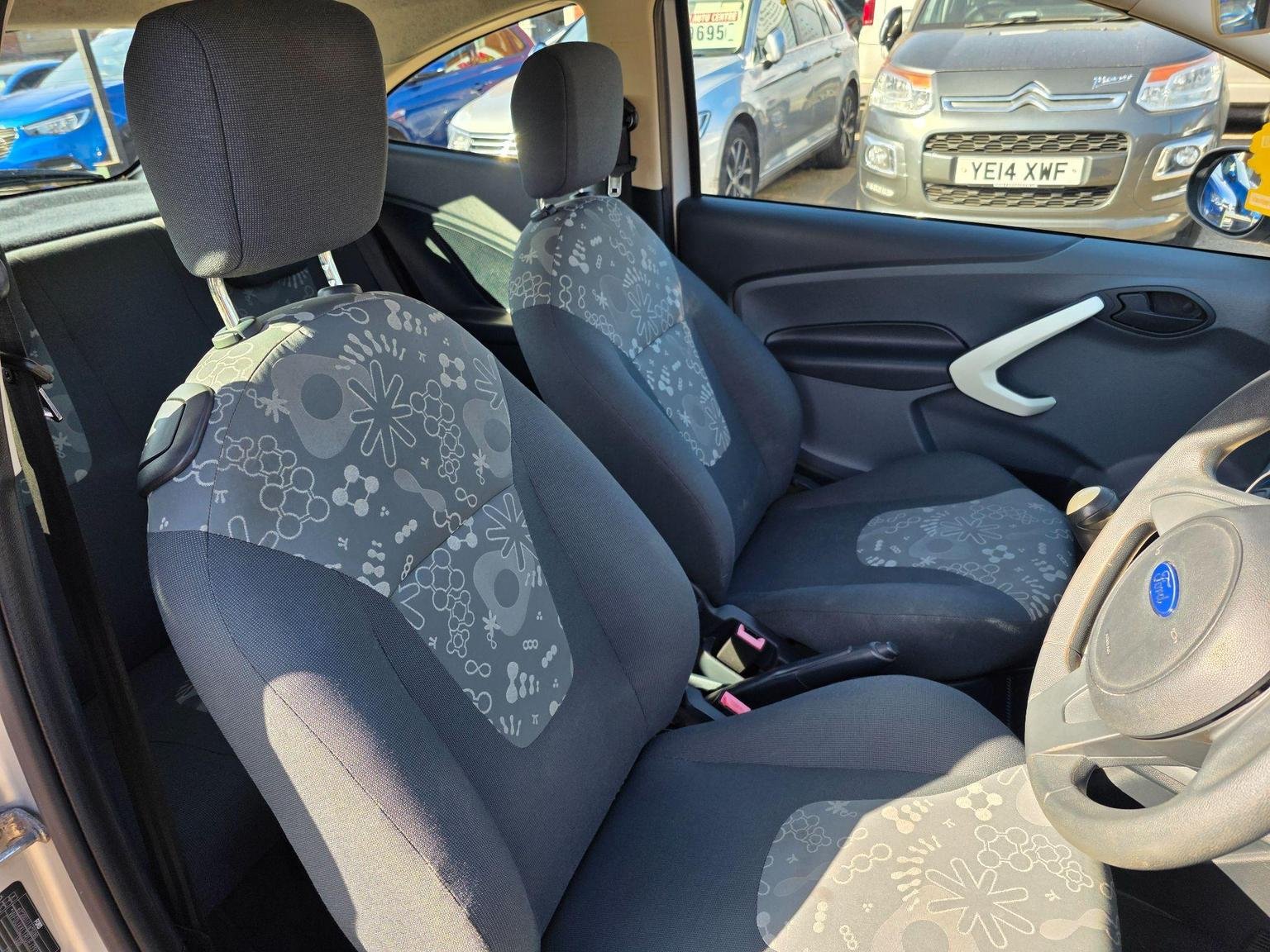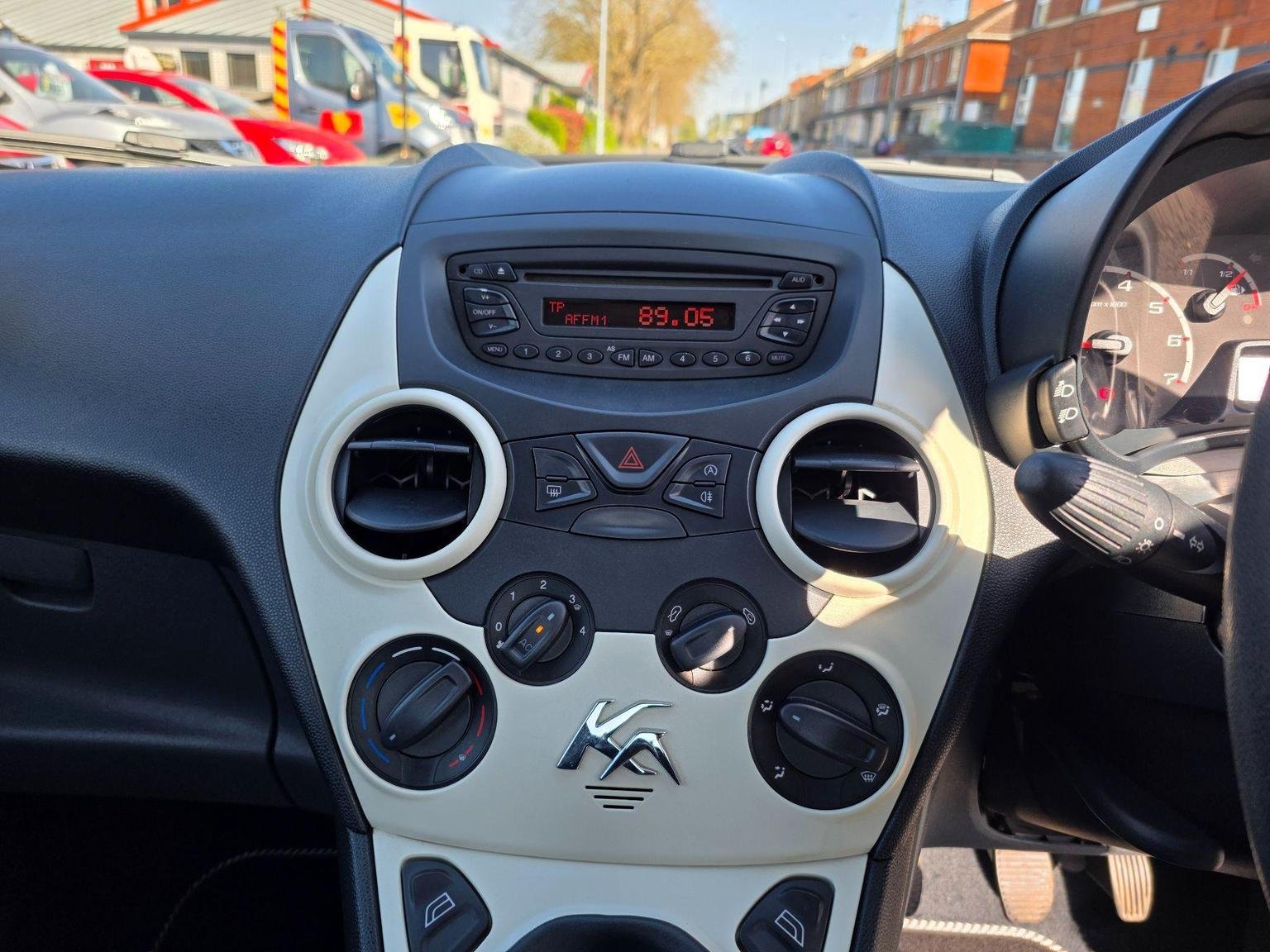 This is a 2014 Ford Ka Edge, a city-friendly car with a 1.2L petrol engine. It comes in the Edge trim and benefits from having only two previous owners. The car includes a Connectivity Pack, which features Bluetooth for hands-free connectivity. For enhanced safety, it's equipped with ESP (Electronic Stability Programme) and curtain airbags, including side airbags. The driver's seat has a tipping feature for easy entry and a memory function, and the car also features manual air conditioning.
