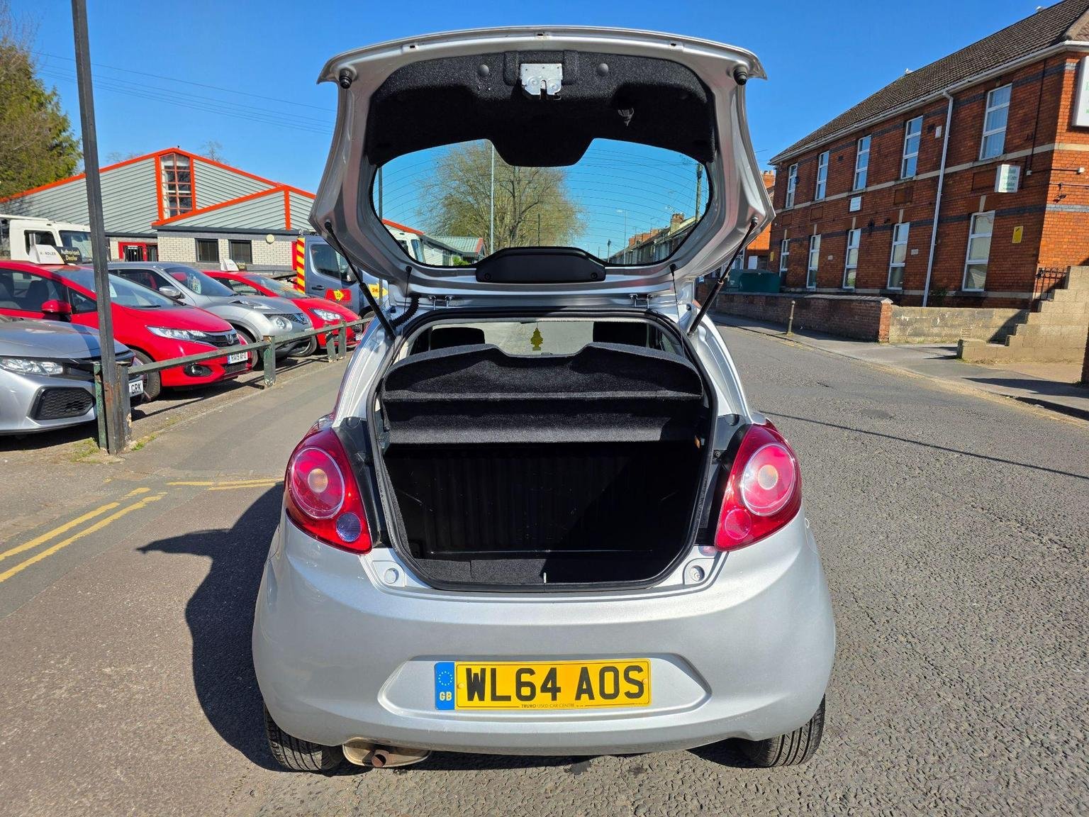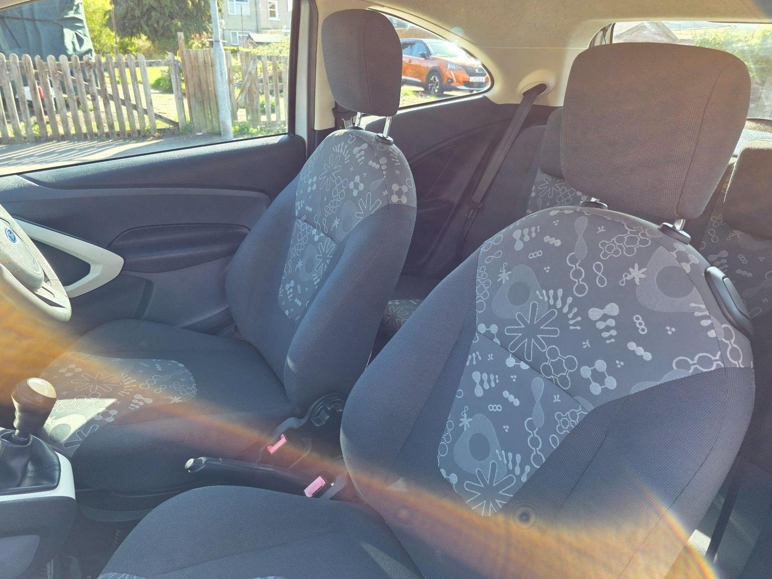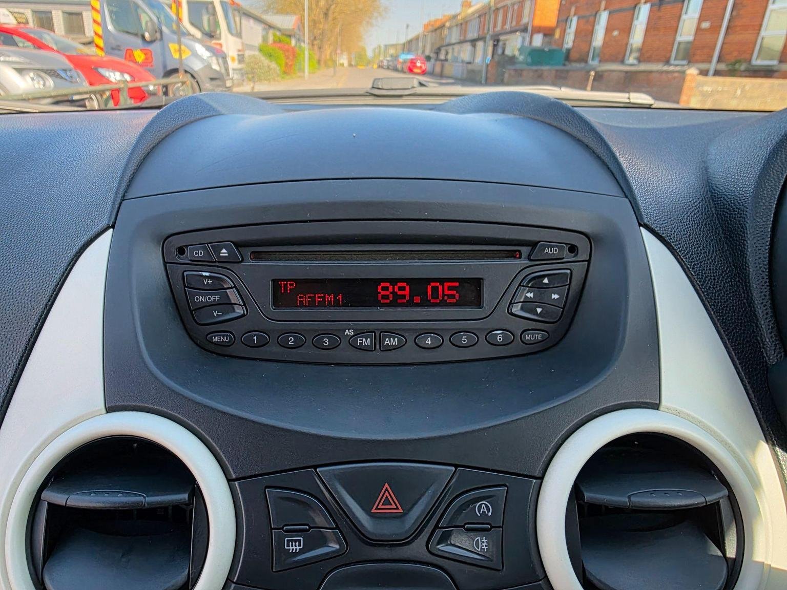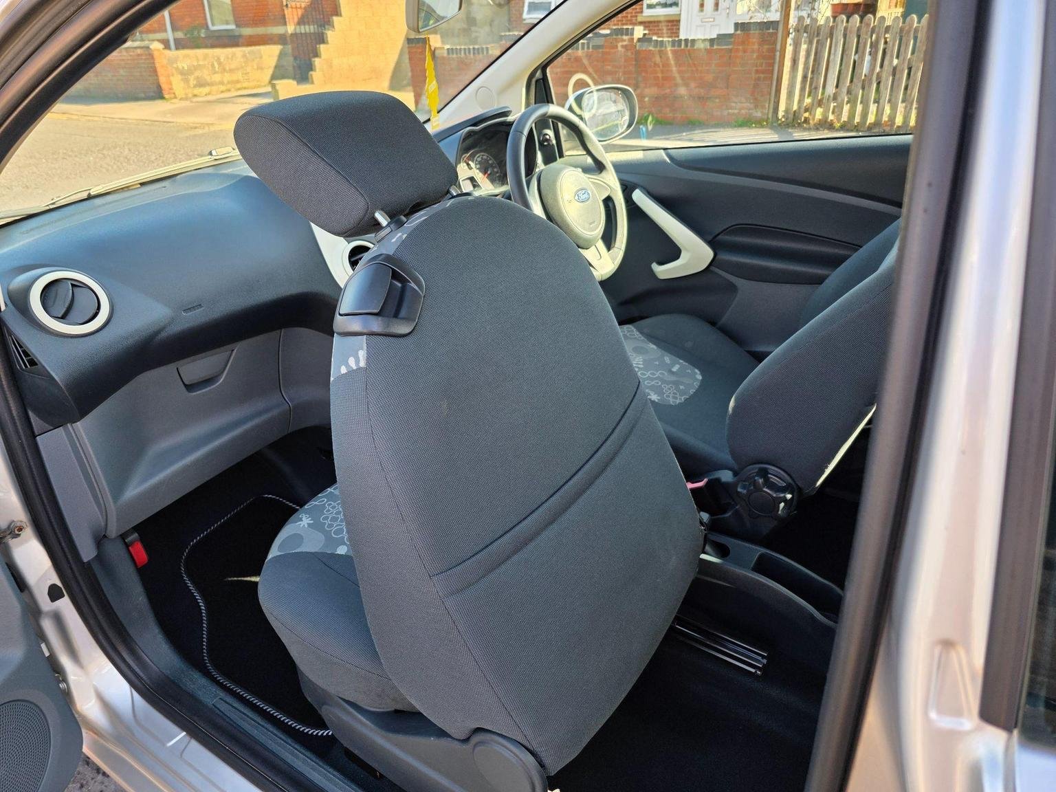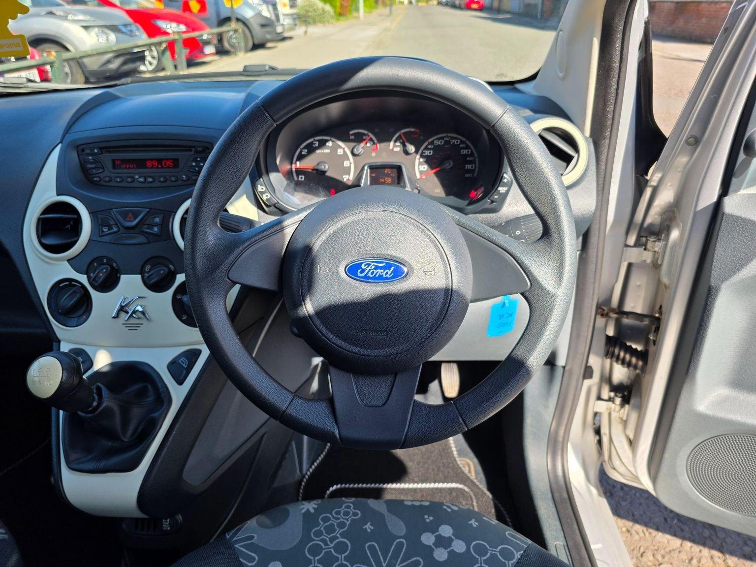 This is a 2014 Ford Ka Edge, a city-friendly car with a 1.2L petrol engine. It comes in the Edge trim and benefits from having only two previous owners. The car includes a Connectivity Pack, which features Bluetooth for hands-free connectivity. For enhanced safety, it's equipped with ESP (Electronic Stability Programme) and curtain airbags, including side airbags. The driver's seat has a tipping feature for easy entry and a memory function, and the car also features manual air conditioning.