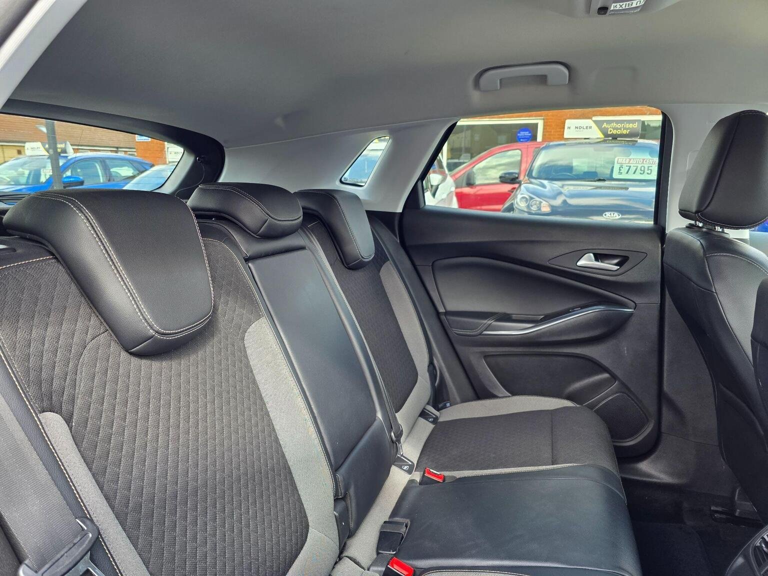 12V Electrical Accessory Socket, 18in Alloy Wheels - Five Spoke Diamond-Cut - Technical Grey, 230V Rear Power Outlet Behind Front Seats, ABS - Anti Lock Brakes, Airbags - Front Seat Side-Impact, Alloy Effect Protective Front and Rear Skid Plates, Ambient Centre Console Downlighter, Ambient Lighting in Front Doors, Anti-Submarining Ramps in Front Seats, Automatic Lighting Control, Automatically Dimming Anti-Dazzle Rear-View Mirror, Black Door Panels with Black Morrocana Inserts, Body Colour Door Mirrors, Body-Colour Door Handles with Chrome-Effect Insert, CSC - Corner Stability Control, Central Facia Display, Centre Rear Seat Head Restraint, Child Proof Locks on Rear Doors, Chrome Effect Front Grille Bar, Chrome Effect Interior Door Handles, Chrome Effect Upper Window Trim, Collapsible Windscreen Wiper System, Comfort Front Seats, Covered Storage Compartment in Centre Console and Drivers Armrest, Cruise Control with Speed Limiter and Intelligent Speed Adaptation, Dark Tinted Windows, Deactivation Switch For Front Passengers Front and Side Impact Airbags, Deformation Zones Front and Rear, Door to Door Illumination, Driver Information Display, Drivers Centre Armrest, Drivers and Front Passengers Airbags, Drivers and Front Passengers Sunvisors with Illuminated Vanity Mirrors, Dual Seatbelt Pretensioners on Front Seats, EBD - Electronic Brakeforce Distribution, Electric Parking Brake, Electrically Operated Front and Rear Windows with Safety Autoreverse and One-Touch Facility, Electronic Climate Control including Air Conditioning, Electronically Protected Audio Equipment, Energy Absorbing Steering Column, Engine Deadlock Immobiliser, Engine Drag Torque Control, Flex Floor with Under-Floor Divider, Four Adjustable Facia Vents, Front Door Pockets with 2.6litre Capacity, Front Door Sill Covers - Alloy-Effect, Front Fog Lights, Front and Rear Passengers Assist Handles, Fuel Gauge with Low Fuel Warning Light, Full Size Curtain Airbags for Driver - Front Passenger and Outer Rear Seat Passengers, Fully Carpeted Luggage Area, Gloss Black B-Pillars, Halogen Headlights with Manual Beam Levelling and High Beam Assist, Hazard Warning Lights, Head Restraints - Rear Height Adjustment, Heated Rear Screen with Timed Cut-Off, Height Adjustable and Removable Head Restraints, Height-Adjustable Front Seat Head Restraints, High-Level Centre Brake Light, Hill Start Assist, Hydraulic Brake Assist, Illuminated Luggage Area, Inertia-Reel Lap and Diagonal Seatbelts, Interior Courtesy Light Operated By Door Switches, Intermittent Rear Window Wipers with Washer, Keyless Entry and Start, LED Daytime Running Lights, LED Tail Lights, Lights On Audible Warning, Load Limiters Outer Rear Seatbelt Retractors, Locking Wheel Nuts, Luggage Compartment 12V Electrical Accessory Socket, Luggage Compartment Cover, Multi-Function Trip Computer, Navi 5.0 Intellilink Touchscreen Navigation and Infotainment System, Park and Go Pack One, Power Tailgate, Pretensioners on Outer Rear Seatbelt Retractors, Rain Sensitive Windscreen Wipers, Rake and Reach Adjustable Steering, Reading Lights - Rear, Rear Door Pockets with 1.8litre Capacity, Rear Fog Light, Rear Passenger Compartment Heating Ducts, Rear Spoiler, Reinforced Passenger Safety Cell, Remote Control Central Locking, Remote Control Security Alarm System, Rev Counter, Reversing Lights, Safety Pack, Seats - Rear Split Folding 60-40, Shift Up Indication Light, Side Blind Spot Alert, Side Impact Protection Beams, Side Protection Mouldings, Side Window Demist Vents, Sight and Light Pack, Six Speakers - Four Front-Two Rear, Smart Seatbelt Reminder for Front and Rear Seats, Sound Absorbing Windscreen, Speed Sensitive Electrically Assisted Power Steering, Speed Sign Recognition, Speedometer, Steering Wheel - Three-Spoke Design - Leather Covered - Satin Chrome-Effect Bezel, Steering Wheel Mounted Audio Controls, Storage Pocket on Front Seat Backs, Switchable Electronic Stability Programme - ESP, Tinted Windows, Toba Grey Facia and Door Panel Inserts, Traction Control, Twin Electrically Adjustable - Heated - Foldable Door Mirrors - Wide-Angle on Drivers Side with Automatic Timed Cut-Off, Two Drinks Holders in Centre Console, Two Speed Windscreen Wipers with Variable Intermittent Wipe, Tyre Pressure Deflation Detection System, Upper and Lower Bumper Design, VIN - Visible Vehicle Identification Number, Vauxhall OnStar, Ventilated Glovebox with Lid, Versatility Pack, Water Temperature Gauge with Warning Light, Welcome Lighting, Windscreen Demist Vents, i-Size Compatible Child Seat Mountings Located on Front Passenger and Outer Rear Seats